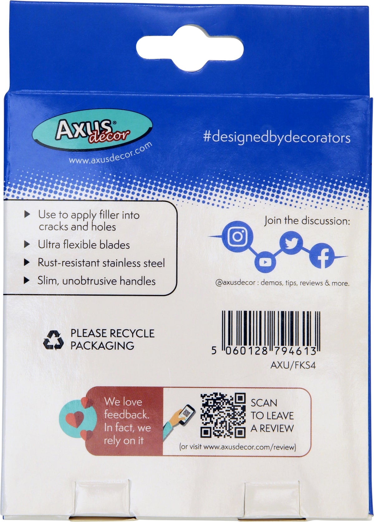 Axus Pro Fill Compact Filler Applicators (Blue Series) 25mm, 50mm, 80mm, 100mm AXU/FKS4