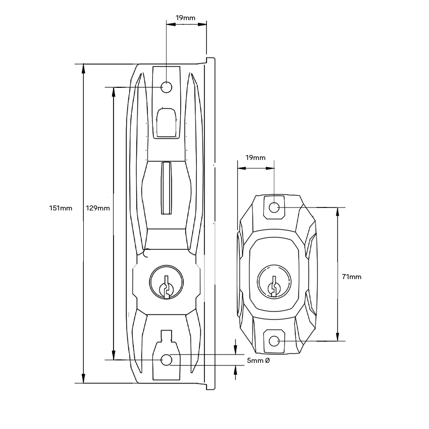 - Dual 6-pin locks can be rekeyed to match doors etc.