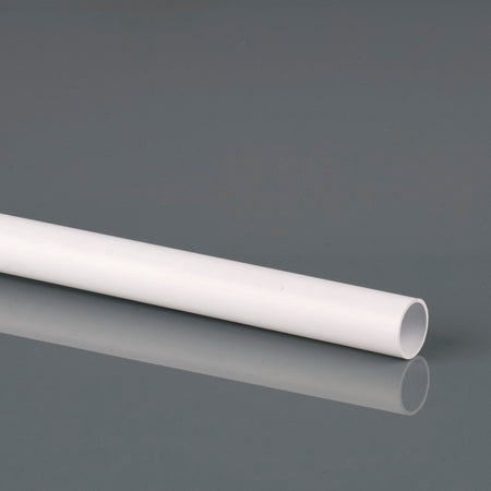 A 21.5 mm solvent-weld overflow system manufactured from white PVC-U. No expansion gap is required for this type of system. Apply solvent cement evenly to both joint surfaces, insert the pipe fully into the socket, and remove any excess cement with a cloth. Allow five minutes for the joint to set before handling and twelve hours before testing the system. Ensure the pipe is cut square, all swarf is removed, and a suitable cleaning fluid is applied to both joint surfaces.
