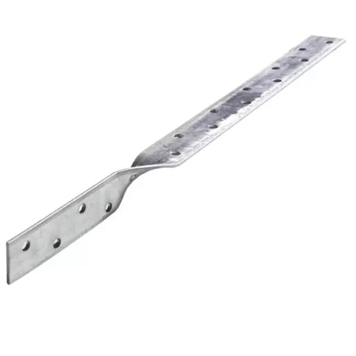 Parkes straps should be used for vertical restraint of roof trusses, rafters and or wallplates to masonry walls.