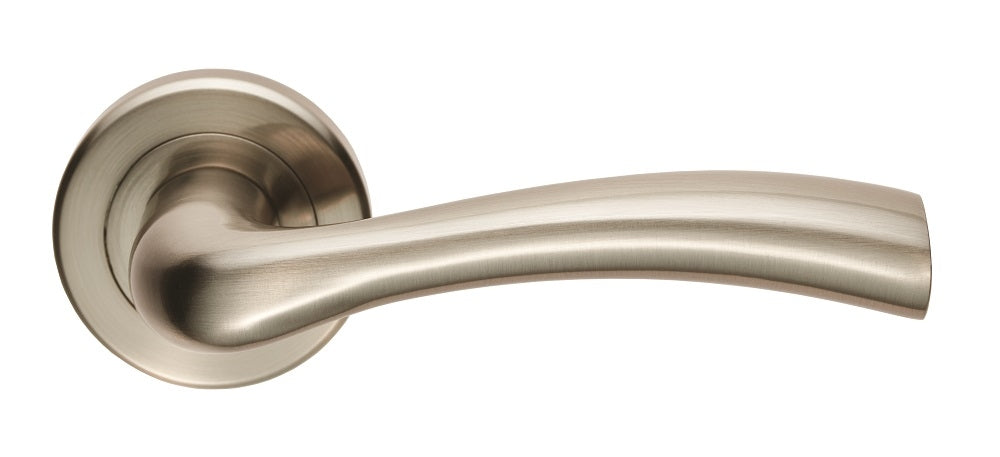 Lever on a chamfered edge concealed fix screw on round rose. This trendy lever curves and flows to a broader end offering a stylish design for the ultra modernistic environment. An eye-catching and funky design. Part of the Serozzetta Residential range. Comes with a 10-year mechanical guarantee.