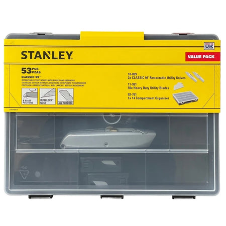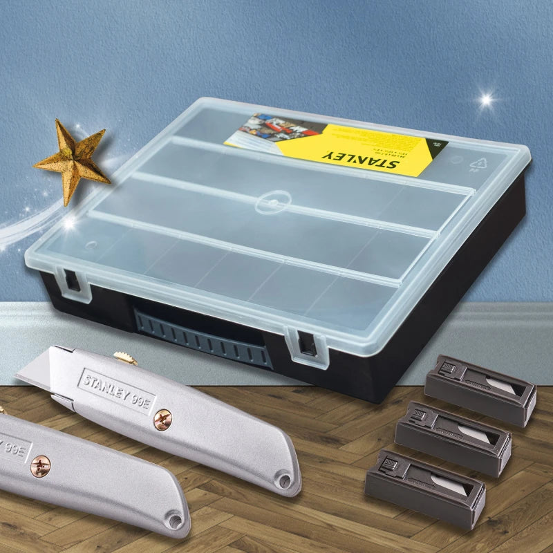 Supplied in a STANLEY® Organiser with 50 Spare Blades.