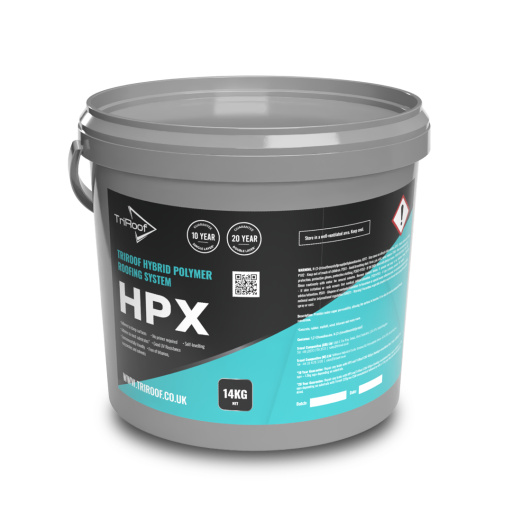 TriRoof HPX is an advanced solution in the world of liquid roof systems and flat roofing products. Designed for both new and existing flat roof systems, it provides a versatile and durable option for flat roof overlay and flat roof repair applications. This innovative hybrid roof system is ready to use straight out of the tin – no mixing, no separate hardeners and no primer required for several substrates!
