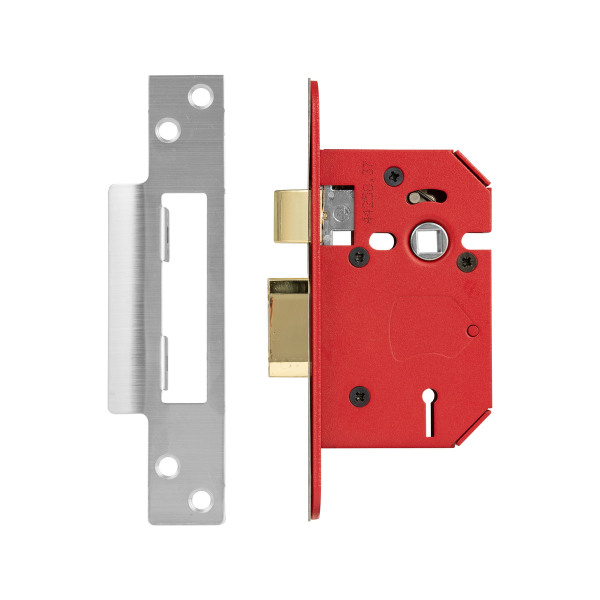 The StrongBOLT 3 lever mortice sashlock features a chamfered bolt design which increases the performance of the lock under side load as well as making a drilling attack more difficult. On top of the chamfered bolt design the sashlock is anti-pick, anti-saw and anti-drill. It features radius inner forends for ease of first fit installation or simple retro fit replacement, it can be installed into many UK mortices without the need for additional carpentry or spoiling the edge of the door. It is suitable for timber doors up to 54mm thick and can be hinged on the left or right and is supplied with radius plastic splinter guard and anti rattle strike. For use with unsprung lever handles. Tested to BS 3621:2007, EN 1634-1 assesed for use on 60 minutes timber fire doors and secured by design accrediation.