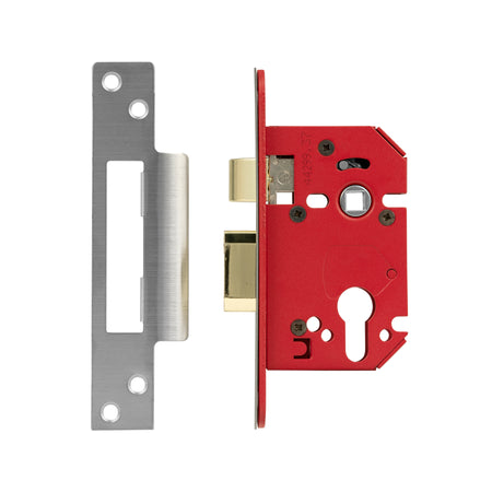 The StrongBOLT euro-profile sashlock features a chamfered bolt design which increases the performance of the lock under side load as well as making a drilling attack more difficult. On top of the chamfered bolt design, the sashlock is anti-pick, anti-saw, and anti-drill. It features radius inner forends for ease of first fit installation or simple retrofit replacement, it can be installed into many UK mortices without the need for additional carpentry or spoiling the edge of the door. It is suitable for timber doors up to 54mm thick and can be hinged on the left or right and is supplied with a radius plastic splinter guard and anti-rattle strike. For use with unsprung lever handles. Tested to BS 3621:2007, EN 1634-1 assessed for use on 60 minutes timber fire doors and secured by design accreditation.