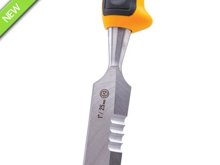 All chisels have a tempered chrome-steel blade for added durability while the bi-material handle offers both comfort and control.